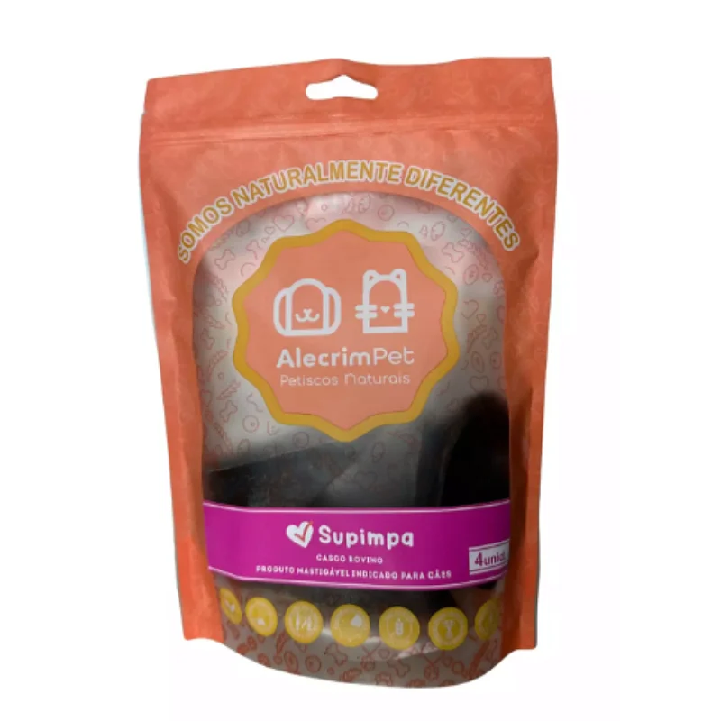 O Supimpa é natural de verdade, um casco selecionado, seguro e de alta qualidade. No processo de fabricação a etapa de higienização é super rigorosa e as temperaturas de desidratação são controladas e ideais para garantir a segurança microbiológica na hora do consumo do seu pet. Nosso acabamento e textura é na medida certa, o que assegura um consumo seguro. E o aroma? Hummm, por ser 100% natural é super atrativo o que vai deixar o rói rói ainda mais delicioso.